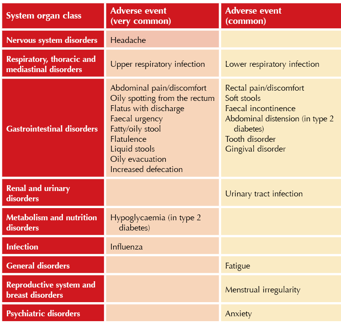 ● These and other common (≥1 event per 100 users) and very common (≥1 event per 10 users) adverse effects are listed in the Table below.